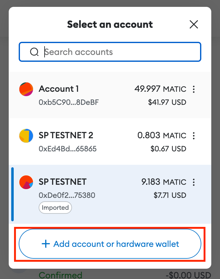 Click Add account or hardware wallet and select Import Account.