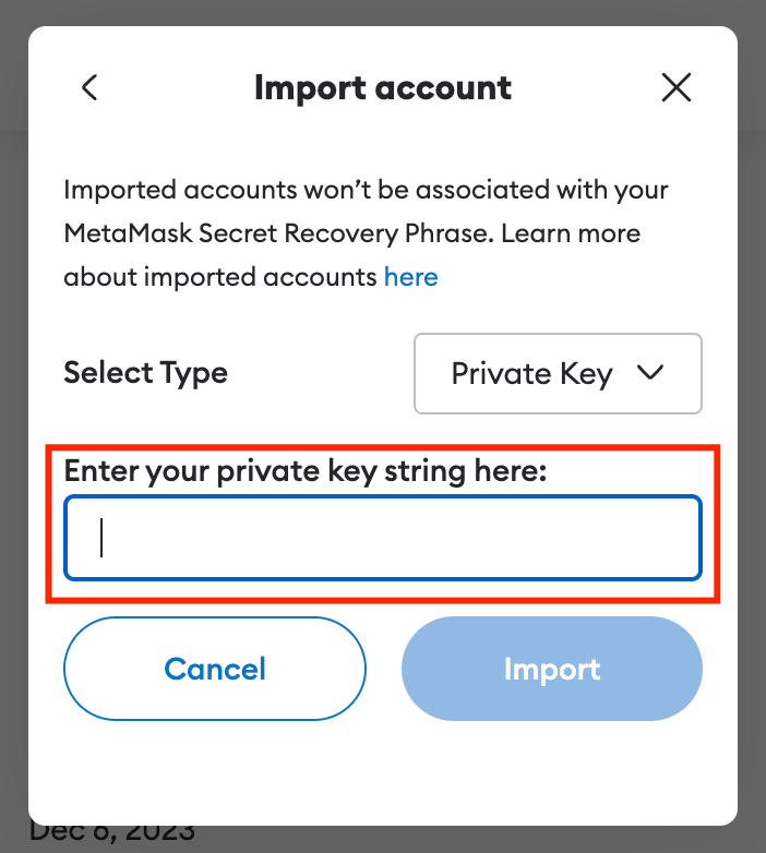 Enter the Private Key you received from Super Protocol and press the Import button. Testnet Private Key looks something like this: